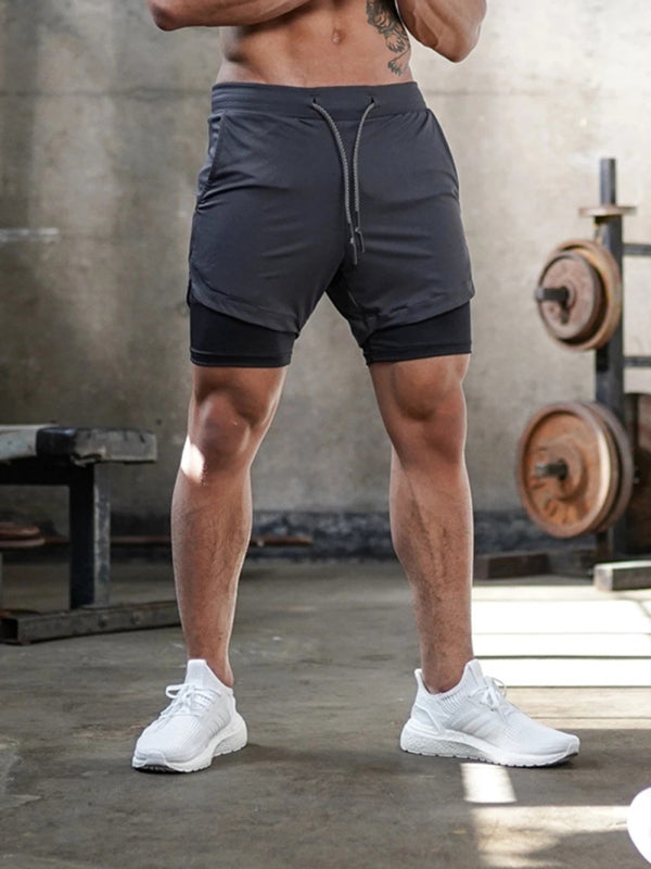 Men's athleisure fake two-piece shorts