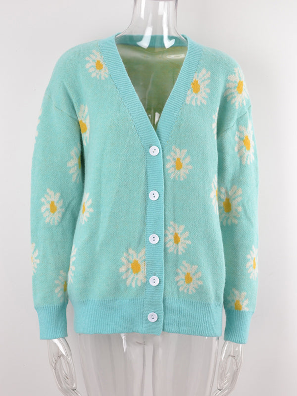 Printed knitted sweater coat sweater cardigan daisy sweater