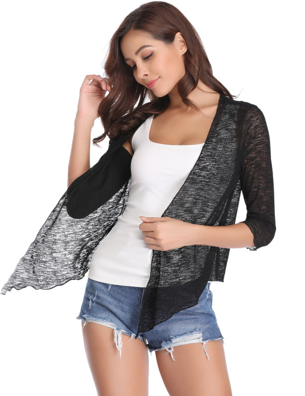 Women’s Fitted Sheer Knit Open Front Cardigan With Half Length Sleeves
