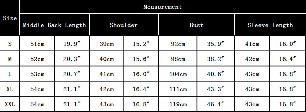 | size | Length | Bust | Shoulder (with sleeve) |