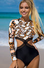 Women's Long Sleeve Printed Cutout One Piece Swimsuit - Black / S is backordered and will ship as soon as it is back in stock.