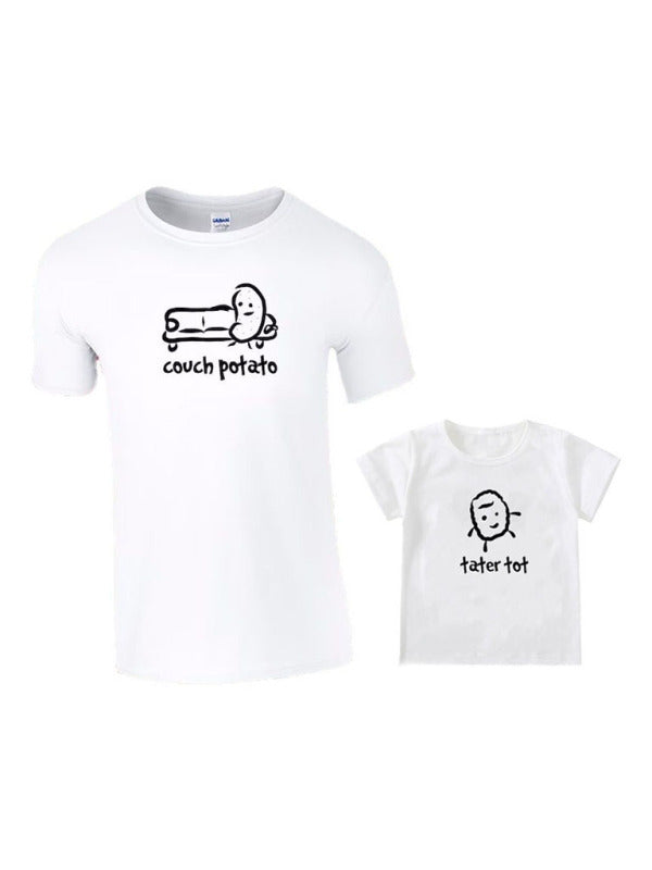 Men's COUCH POTATO Print Short Sleeve Round Neck T-Shirt Parent-child Wear
