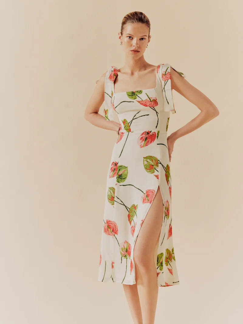 Summer French Elegant Pastoral Printed High Slit Strap Dress Women Tube Top Mid Length Dress - S / Multi is backordered and will ship as soon as it is back in stock.