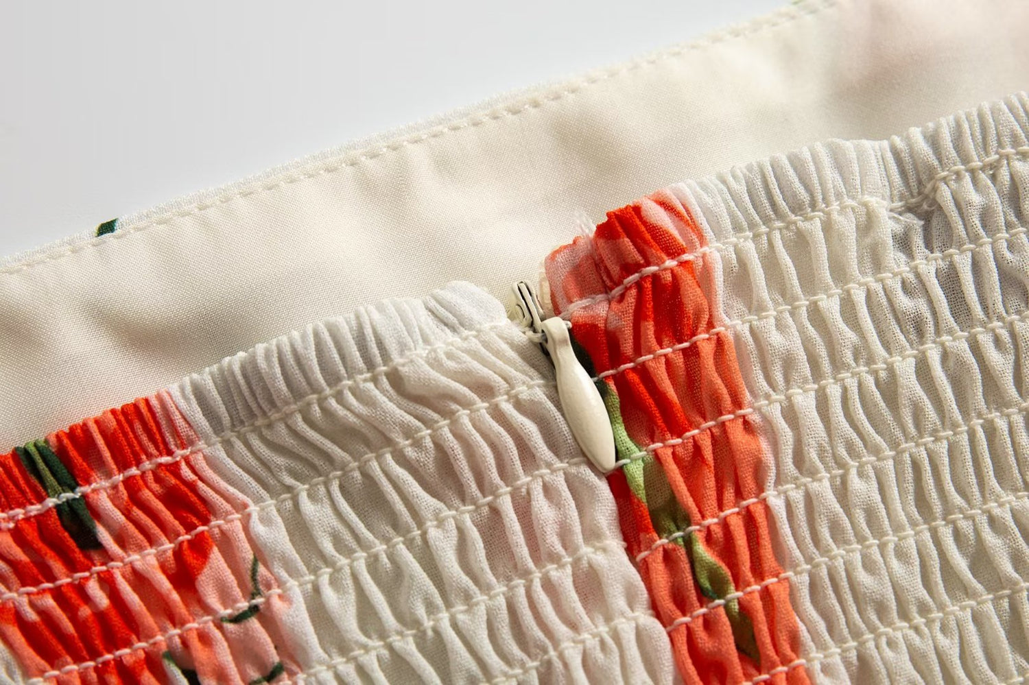 Summer French Elegant Pastoral Printed High Slit Strap Dress Women Tube Top Mid Length Dress