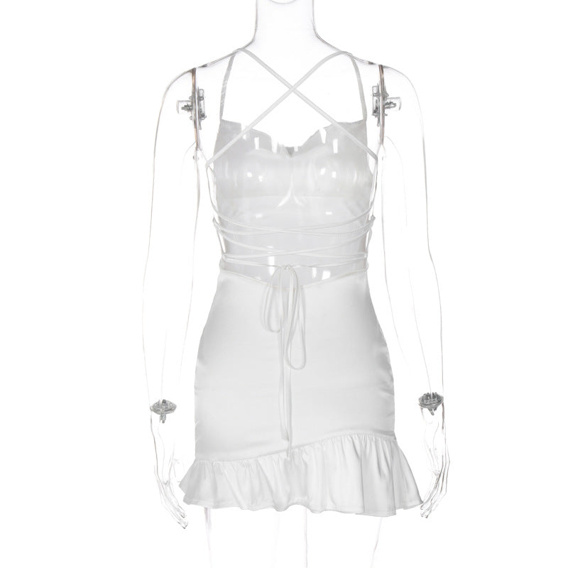 Women Clothing Summer Elegant Sexy Low Cut Backless Lace up Strap Dress - S / White is backordered and will ship as soon as it is back in stock.