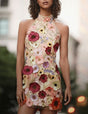 Women Embroidered Three Dimensional Floral Halter Slim Dress Small Dress - S / Multi is backordered and will ship as soon as it is back in stock.