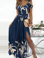 Women's long dress printed V-neck temperament sleeveless sexy slit dress