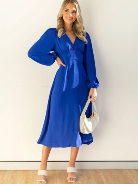 $44.64 USD$64.88Unit price /Unavailablev-neck lantern sleeves high waist loose slim all-match dress