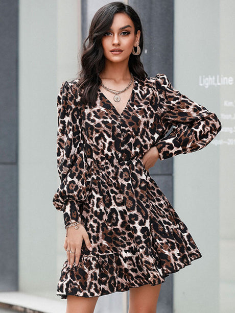 $41.73 USDUnit price /UnavailableWomen’s Cheetah Print Casual Off The Shoulder Babydoll Dress With Long Sleeves