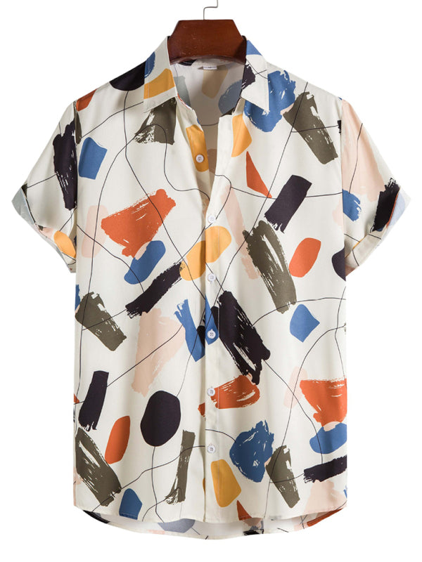 White Graffiti Print Lapel Cotton Slim Fit Men's Shirt - White / S is backordered and will ship as soon as it is back in stock.