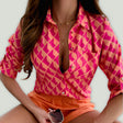 Women’s Bright Pattern Point Collar Long Sleeve Button Front Shirt