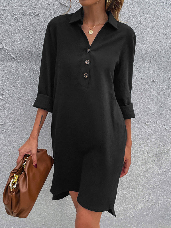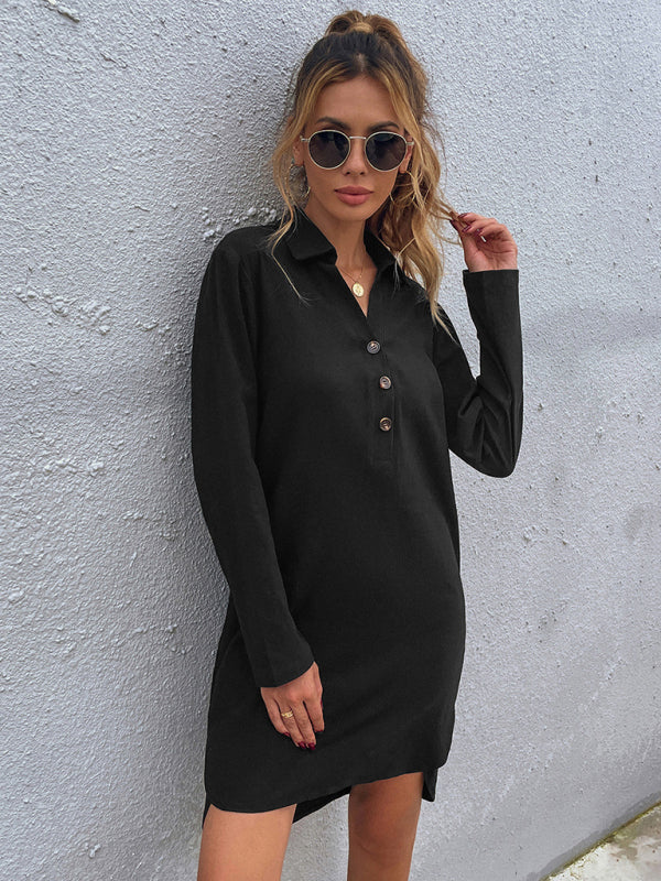 Women’s Classic V Neck Long Sleeve Shirtdress - Black / S is backordered and will ship as soon as it is back in stock.