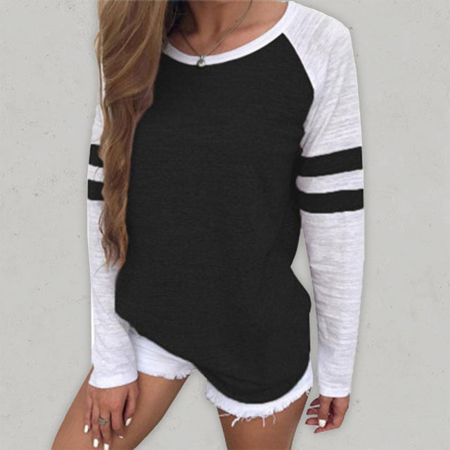 Women’s Colorblock Stripe Long Sleeve T Shirt - Black / S is backordered and will ship as soon as it is back in stock.