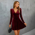 Women’s Faux Wrap V Neckline Puff Long Sleeve A Line Velvet Mini Dress