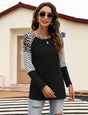 Women’s Long Sleeve Waffle Sweater With Leopard And Stripe Color Blocking - Black / S is backordered and will ship as soon as it is back in stock.