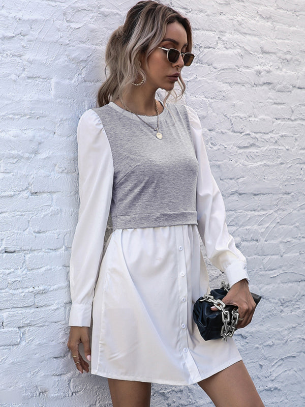 Women’s Sheer Collared Button Down Dress With Built In Knit Vest Design - Photo Color / M is backordered and will ship as soon as it is back in stock.
