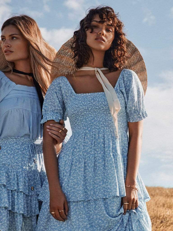 Women’s Smocked Bust Puffy Sleeves Dress - Mist blue / S is backordered and will ship as soon as it is back in stock.