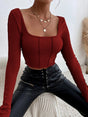 A contrast stitching essential, this go-to long sleeve features a square neckline and form fitting crop silhouette. This soft long sleeve is a goes-with-everything wardrobe staple.