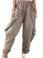 Women’s Solid Color Soft Blend Bat Buttons Packet Cargo Pants