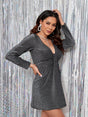 Women’s Sparkly Long Sleeve V-neck Mini Dress - Grey / S is backordered and will ship as soon as it is back in stock.