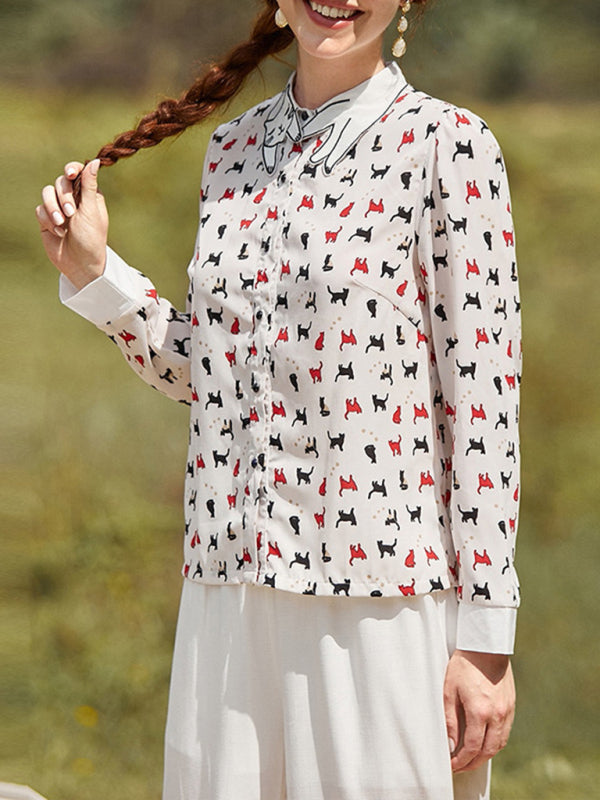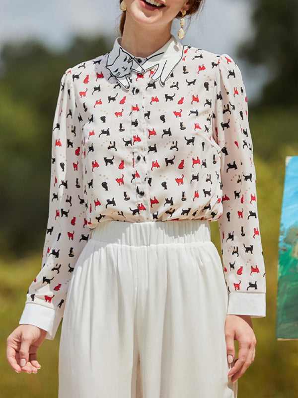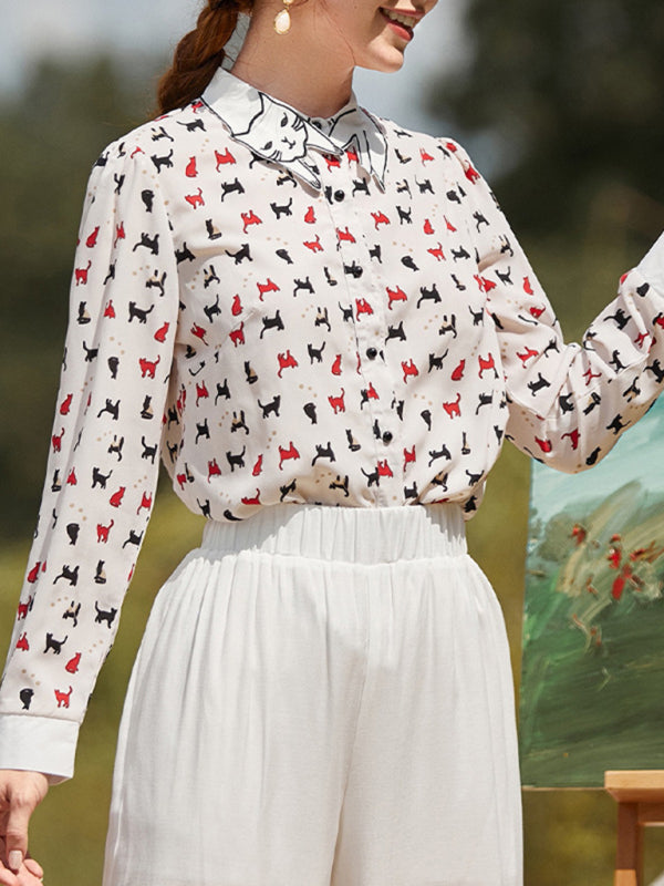 Women’s Statement Cat Print Blouse With Iconic Cat Cutout Collar