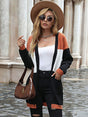 Women’s V Neck Long Sleeve Turbo Colorblocked Cardigan