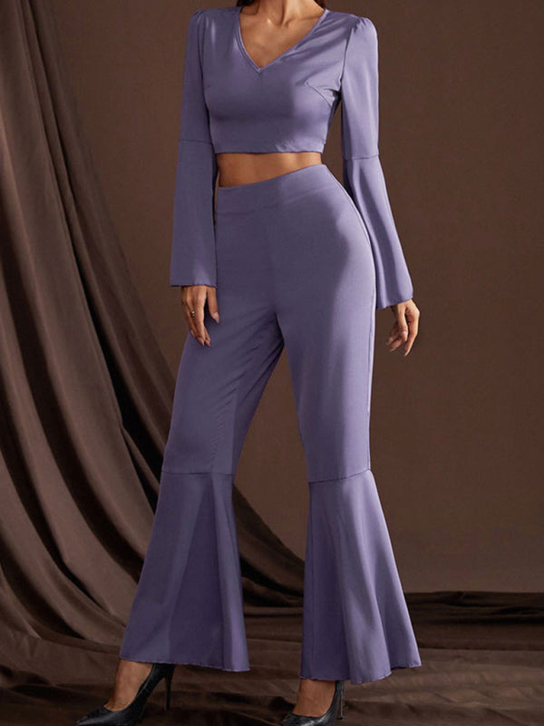 Women’s Wide Bell Bottom Sleeve And Pant Leg Matching Yoga And Lounge Set