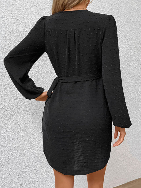 Women's Black Elegant Jacquard Long Sleeve Dress