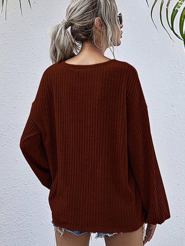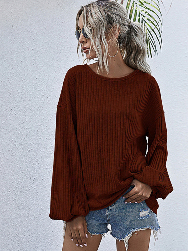 Women's Casual Round Neck Pullover Solid Color Top - Wine Red / S is backordered and will ship as soon as it is back in stock.