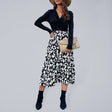 Women's Combo Color Twist Long Sleeve Top With Printed Flared Skirt - Black / S is backordered and will ship as soon as it is back in stock.