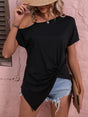 Women's Solid Color Chain Hardware Cutout Shoulder Top - Black / S is backordered and will ship as soon as it is back in stock.