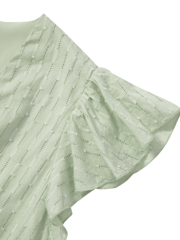 Women's Solid Color embroidered Flutter Sleeve Midi Dress
