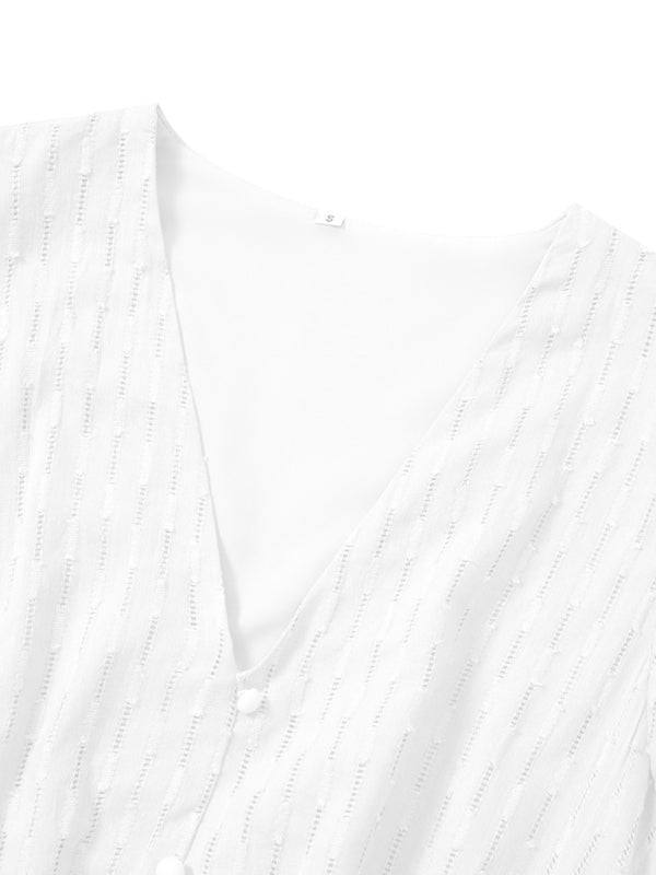 Women's Solid Color embroidered Flutter Sleeve Midi Dress - White / S is backordered and will ship as soon as it is back in stock.