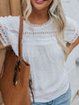 Women's Solid Color Flutter Sleeve Lace Trim Blouse