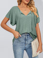 Women's Solid Color Flutter-sleeve Tie-neck Top - Green / S is backordered and will ship as soon as it is back in stock.
