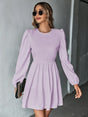 Women's Solid Color Lace-up Back Puff Long Sleeve Mini Dress - Light violet / S is backordered and will ship as soon as it is back in stock.