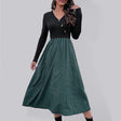 Women's Solid Color Long Sleeve Faux Wrap A-line Polka Dot Skirt Midi Dress - Dark green / S is backordered and will ship as soon as it is back in stock.