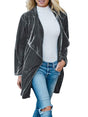 Women's Solid Color Open Front Velvet Blazer - Grey / S is backordered and will ship as soon as it is back in stock.