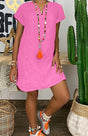 Women's Solid Color Split Neckline Linen Blend Dress - Pink / S is backordered and will ship as soon as it is back in stock.