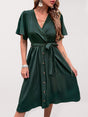 Women's Solid Color Surplice Faux Wrap Button-down Midi Dress