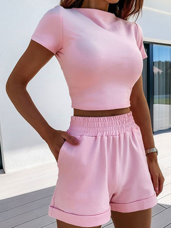 Women's Solid Color tee & Elastic Waist Shorts - Pink / S is backordered and will ship as soon as it is back in stock.