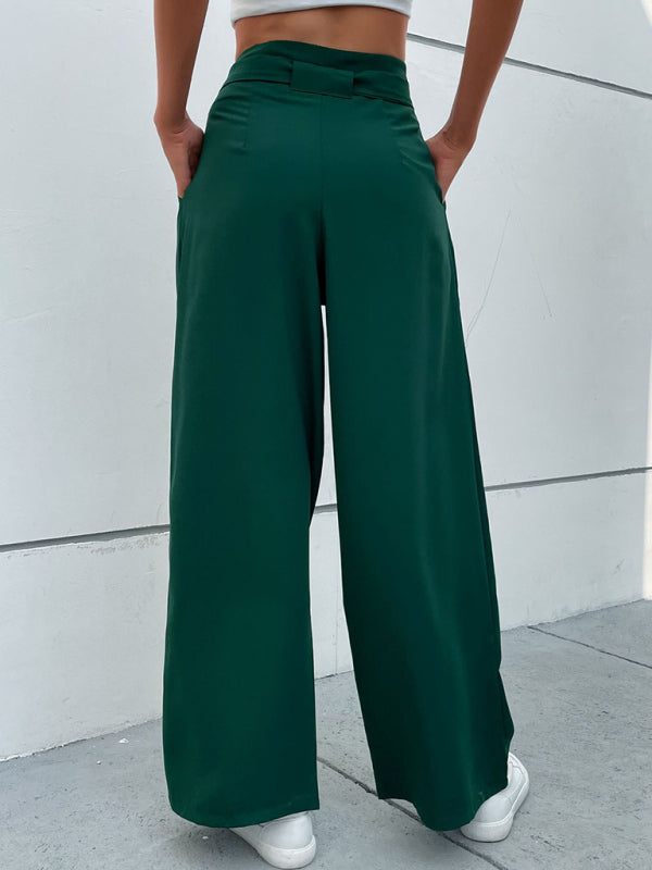 Women's Solid Color Tie Waist Wide Leg Pants - Dark green / S is backordered and will ship as soon as it is back in stock.