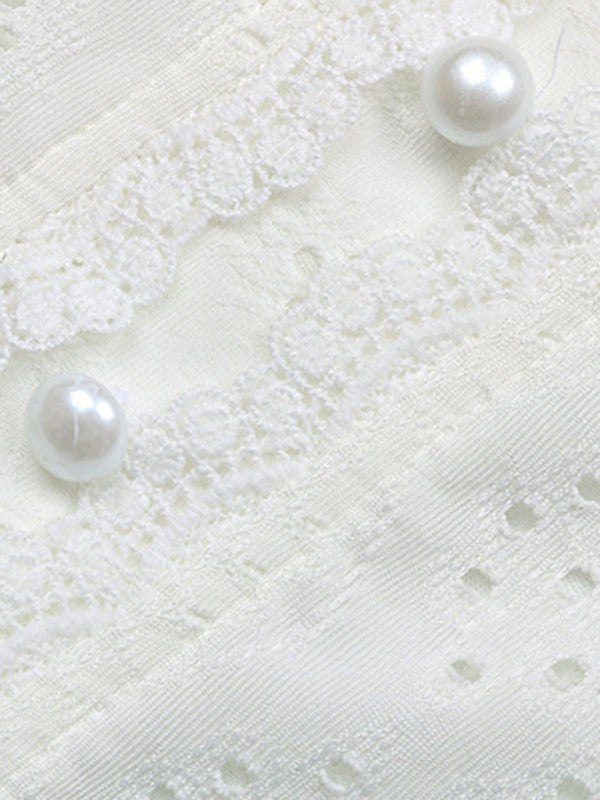 Women's solid color V-neck hollow short-sleeved blouse - White / S is backordered and will ship as soon as it is back in stock.