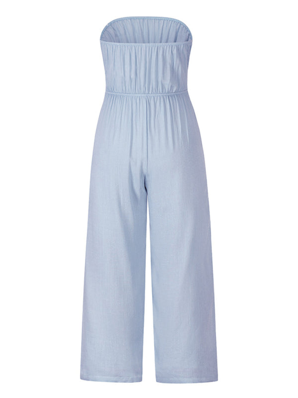 Women's Strapless Tie-waist Jumpsuit - khaki / S is backordered and will ship as soon as it is back in stock.