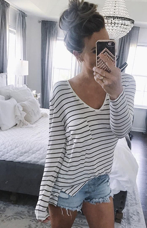 Women's Striped Bottoming Shirt Top Leaning Long-Sleeved T-Shirt - Ivory / S is backordered and will ship as soon as it is back in stock.