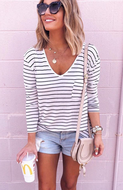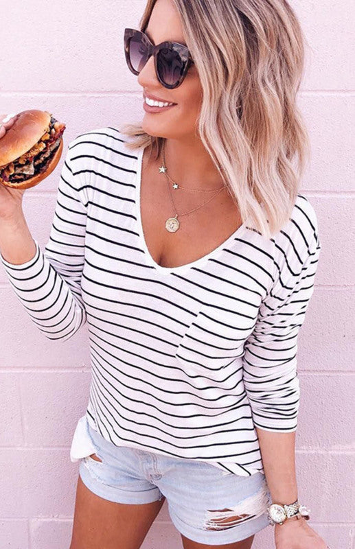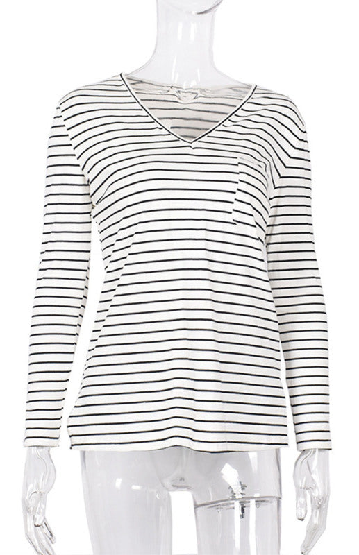 Women's Striped Bottoming Shirt Top Leaning Long-Sleeved T-Shirt