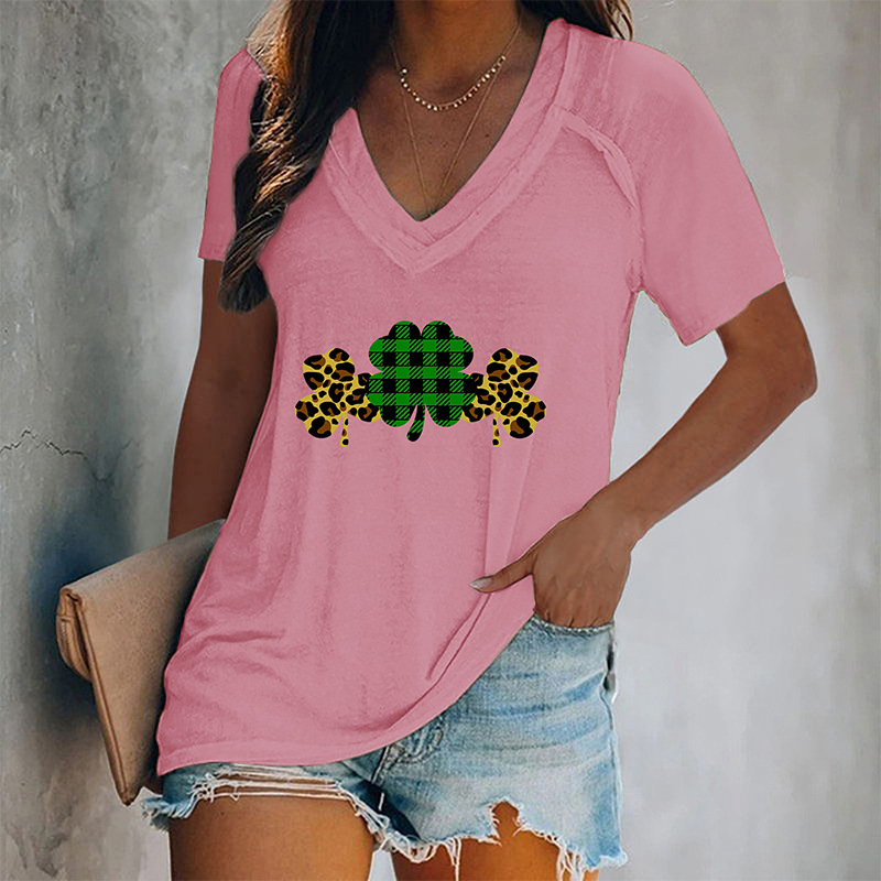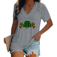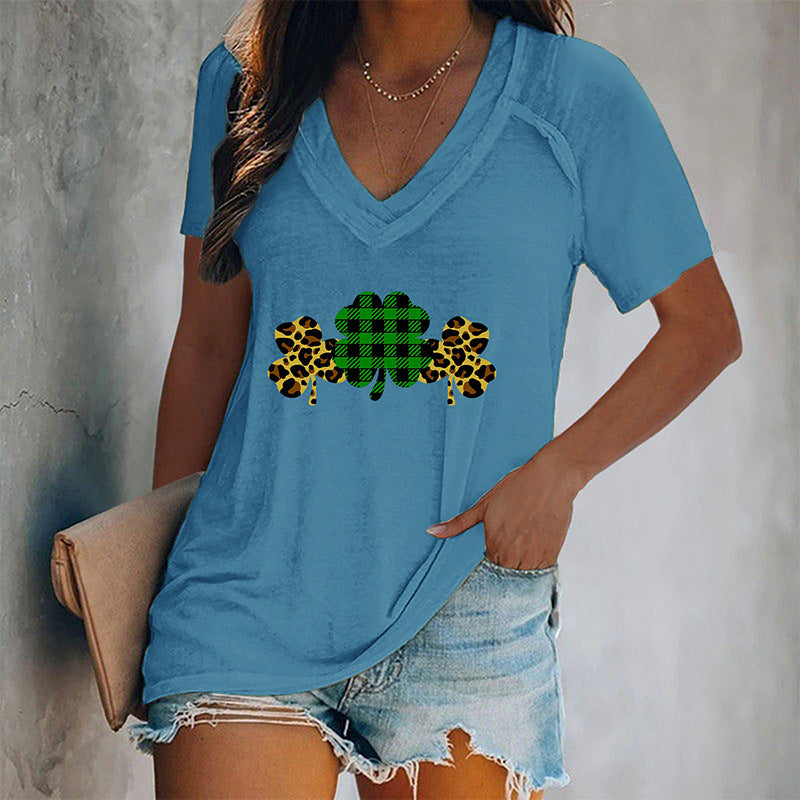 Women's V-neck Graphic Printed Four-leaf Clovers T-shirt