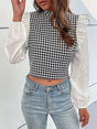 Women's Woven Mock Neck Long Sleeve Houndstooth Shirt