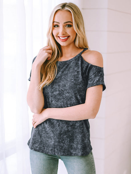 Women's Woven Jacquard V-Neck Loose Tie Chiffon Short Sleeve Top