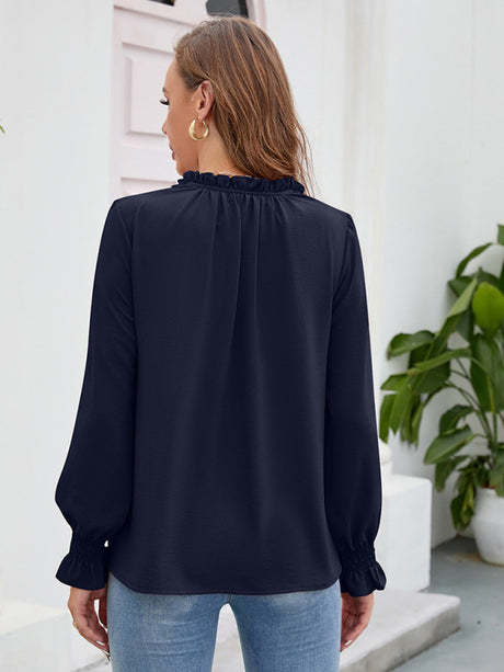 $33.37 USDUnit price /UnavailableWomen’s Solid Color Loose Fit Blouse With Ruffled Mid Length Sleeves